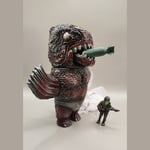 -6.75 inches tall, 4 points of articulation (head, arms, and jaw)